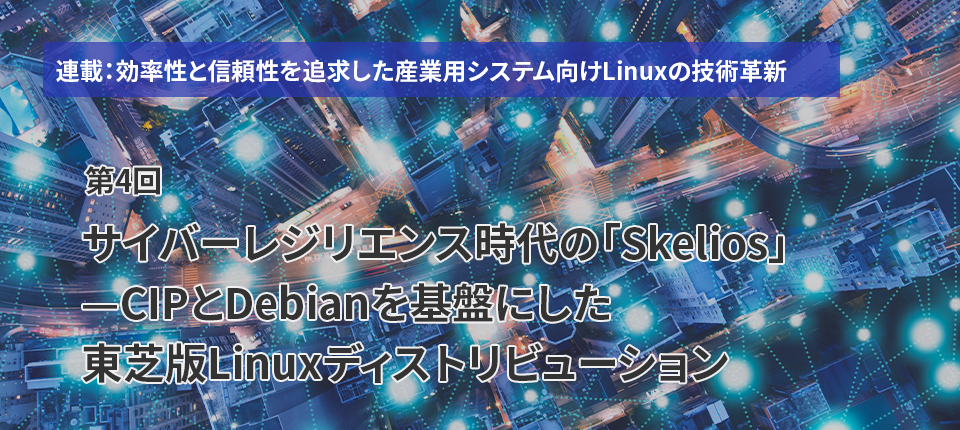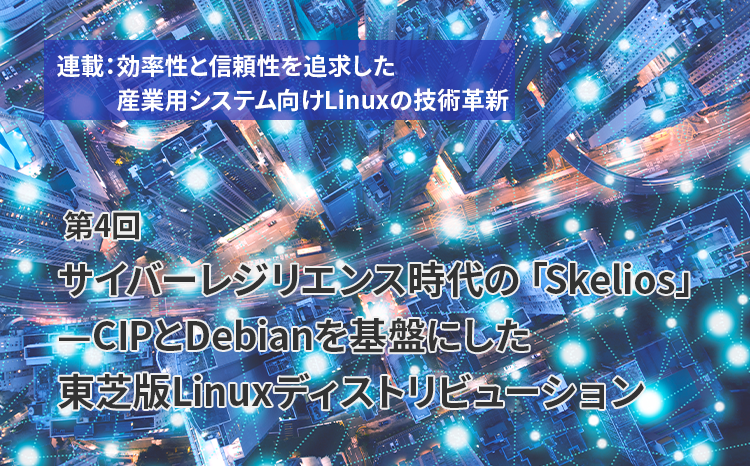 これまで3回にわたり、組込みLinuxの基本課題やその対応策、技術的な挑戦、さらにはオープンなコラボレーションを通じた共通課題の解決を目指す「Civil Infrastructure Platform(CIP)」の活動と東芝のリーダーシップについて紹介してきました。最終回となる第4回は、これまでに解決してきた技術課題の成果を取り込み、東芝の多様な製品を支えている産業用Linuxディストリビューション「Skelios(スケリオス)」を紹介するとともに、連載を総括します。