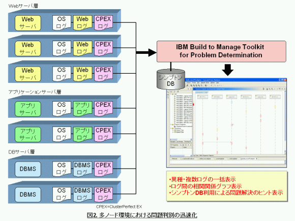 図1.サーバーリソース最適化によるアプリ応答時間の改善 ![]() 図2.多ノード環境における問題判別の迅速化 ![]() |