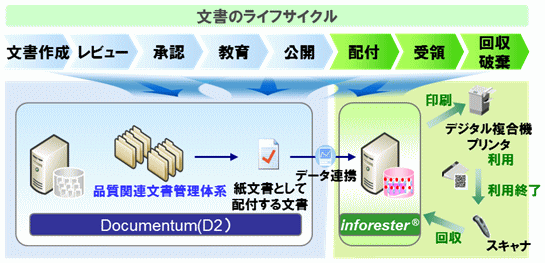 今回、文書の種類・利用目的などの企業文書体系と、電子文書・紙文書などの利用体系に応じて、管理対象の文書をエンタープライズレベルで管理するために、規制業界に必須の機能を備える、文書管理ソリューション「Documentum(D2)」と「inforester®」を連携する機能強化を実施し、SOP文書ライフサイクル管理ソリューションとしてご提供します。