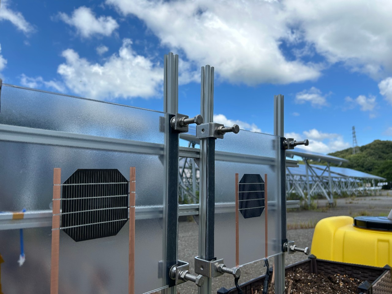 タンデム型ペロブスカイト太陽電池は、従来のシリコン太陽電池の置きかえとして利用することが期待されるため、比較的自然環境に近い場所で使用される可能性があります。一方で、タンデム型ペロブスカイト太陽電池は、シリコン太陽電池と同じようにガラス板で封止されることから、大規模地震などの想定外の破損を受けたとしても鉛溶出しないことが求められています。今般、委託事業の一環として鉛安定化技術を有するタンデム型ペロブスカイト太陽電池を用いてフィールド試験を開始します。