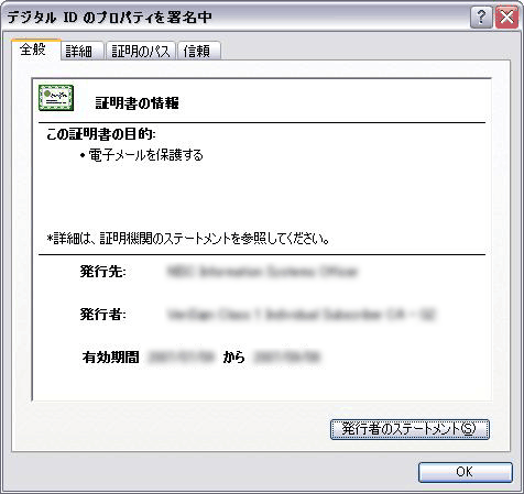 (2) 「デジタル署名者」に表示されているメールアドレスと送信者のメールアドレスが同じであることを確認してください。