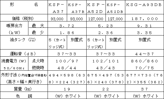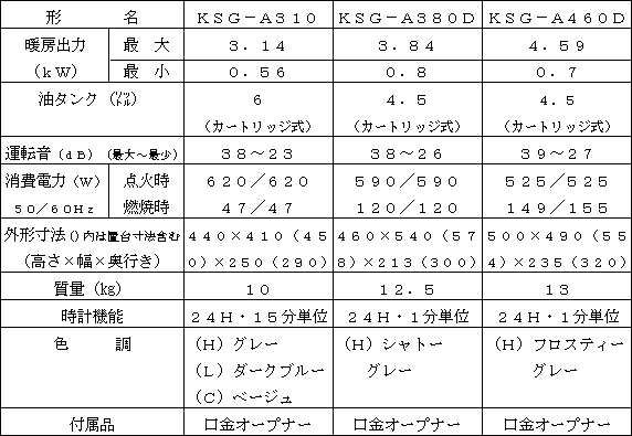 新製品の主な仕様 石油ファンヒーター ![]()