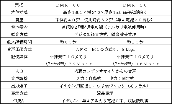 新製品の主な仕様