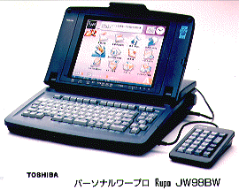 当社は、ビジネスで頻繁に使用される文例や用語を内蔵した「オフィス文例集」、 「自治体・ビジネス辞書」を搭載するとともに、表計算ソフト「Lotus1-2-3 R2.5J」をハードディスクに搭載することにより、 オフィスでの文書作成の効率化を実現したビジネス用カラー液晶ワープロ「Rupo JW98BW」を商品化し、 10月24日から発売します。 新製品は、約350種の文例を内蔵している「オフィス文例集」、 および法律用辞書など7分野 約4,700語の用語を内蔵している「自治体・ビジネス辞書」を搭載するとともに、 ハードディスクに統合型表計算ソフト「Lotus1-2-3 R2.5J」を搭載しており、 オフィスでの効率的な文書作成や複雑な表計算業務も1台で処理することが可能です。 また、切手サイズのメモリカードの「スマートメディア」用スロットを搭載しており、 スマートメディアに最大6,000ページ*1(4MBスマートメディア使用時)の文書を保存することができるとともに、 デジタルカメラの画像をスマートメディア経由で直接取込むことが可能で、 画像入りの報告書や資料などを簡単に作成することができます。