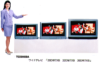 当社は、ハイビジョン放送を現行の放送方式の信号に変換する M-Nコンバータを内蔵することによりハイビジョン番組を通常のテレビの画質で楽しむことができる最上位機種ワイドテレビ「36DW7XB」など3機種を、 11月1日から順次発売します。 新製品は、本体前面にセンタースピーカを装備することで人の声の明瞭度や音源位置感を改善するとともに、 左右の音の広がりと奥行き感を再現するスペシャライザー また、2画面分割の「ダブルウインドウ」を更に発展させ、画面上のアイコンを選択し、 希望の外部入力映像を子画面で同時表示できる「メディアチェック」や画面の右側の3つの子画面で裏番組のチェックができる「3画面サーチ」、 画面全体を12分割して放送中の番組を一括表示する「チャンネルガイド」などの機能を搭載しています。 加えて、双方向テレビ放送「IT(アイティー)ビジョン」にも対応しています。