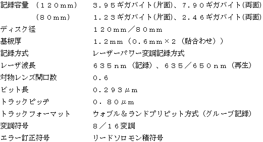 | DVD-R規格バージョン1.0の確定および発行について 1997年9月26日 DVDフォーラム DVDフォーラム10社はディスクの片面で3.95ギガバイトの記録容量を持つDVD-R(追記可能なDVD)の規格バージョン1.0について合意し、 今月より規格書の発行を開始しました。 今回規格が決定した3.95ギガバイトのDVD-Rは、 当初はDVDソフトを制作・検証する際に必要な業務用のオーサリングツールとして普及が見込まれているもので、 DVD-ROMやDVD-Videoとの互換性を確保しています。 なお、DVD-Rワーキンググループでは、次世代の片面4.7ギガバイトに対する規格策定作業を9月末より開始します。 民生用にも普及が期待される4.7ギガバイトのDVD-Rの規格については、 DVDフォーラムとしてコピープロテクション技術の検討・導入も同時に行っていきます。 DVD-Rワーキンググループでは、 本年4月の規格バージョン0.9の決定を受けドライブメーカーやディスクメーカーなど国内外20数社にて構成するDVD-Rアドバイザリーグループ(DVD-Rディスクの互換性確認および仕様確認を行うグループ)によるDVD-Rディスクの互換性評価を行ってきました。 その結果、再生専用DVD規格との互換性や、信頼性、次世代への拡張性などが検証されたため、 DVDフォーラムにて最終規格バージョン1.0を確定しました。 今回完成した規格は、(1)幅広いユーザーや多数のメディアメーカー、 ドライブメーカーの要望を広く取り入れること、(2)次世代4.7GBへの拡張性の確保、 早期実現等をコンセプトとして、(3)DVD-Video、 DVD-ROMとの互換性を確保するとともに、拡張性、経済性、 信頼性の高い規格としました。 今回確定した「DVD-R」規格の主な特長は次のとおりです。