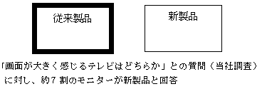 従来は太いフレームで画面を囲むデザインでしたが、 スピーカーの配置やブラウン管の構造などを見直すことにより、 フレームを細くするとともに、フレームの縁色をシルバーにすることにより、 さらに細く見えるデザインにしています。 これにより、従来同形機種よりも画面サイズが大きく感じられ、 フレームによる画面への圧迫感も少なくなりました。