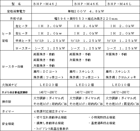 新製品の主な仕様