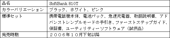 | SoftBank向け携帯電話「SoftBank 810T」の発売について 2006年9月28日