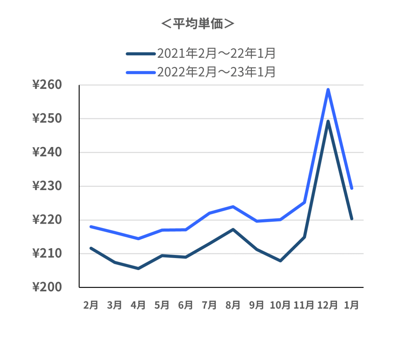 平均単価は昨年比約4.1%増、平均数量約2.8%減と