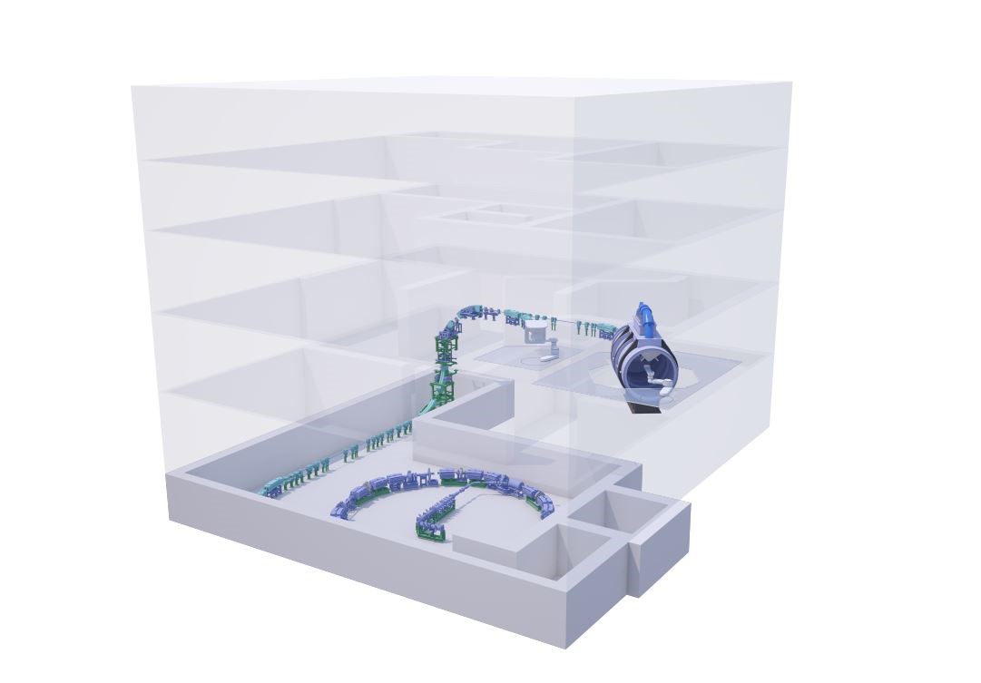 当社が納入した装置は、回転ガントリー注2式治療室1室と水平方向固定照射式治療室1室の計2治療室で構成される重粒子線治療装置で、本日、水平方向固定照射式治療室での治療が開始されました。回転ガントリー式治療室での治療も2021年夏頃に開始される予定です。