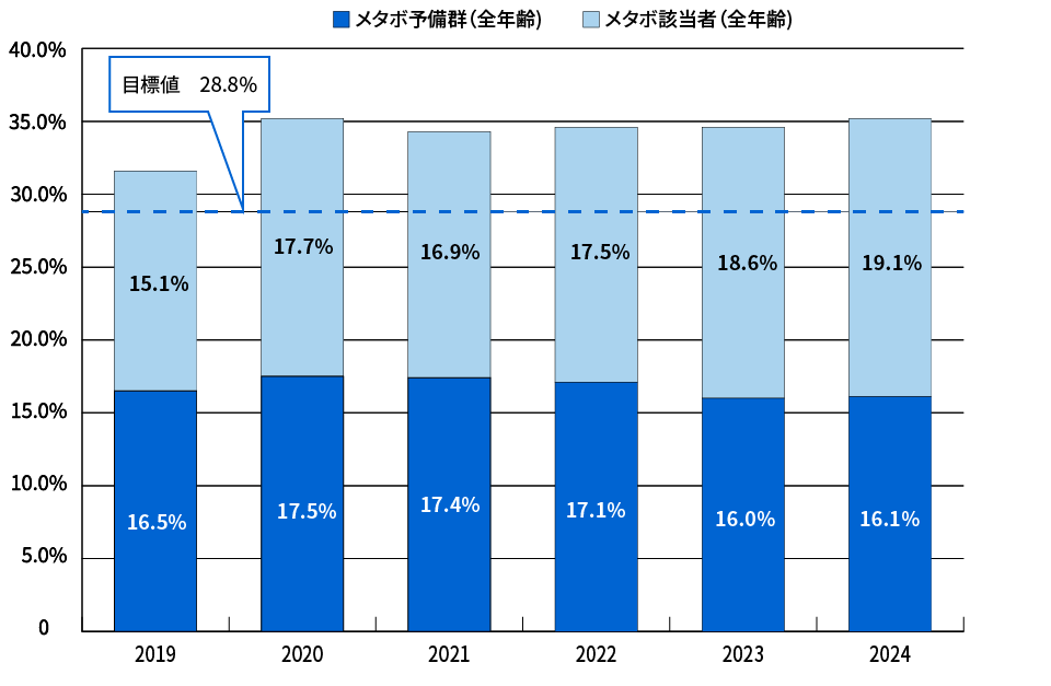 運動取り組みの効果は健康KPIに現れ、悪化(増加)傾向であった「1日歩数が6000歩未満の対象者割合」が、23年度 の63.%から24年度の 60.8%と、コロナ禍以降初めて改善に転じました。