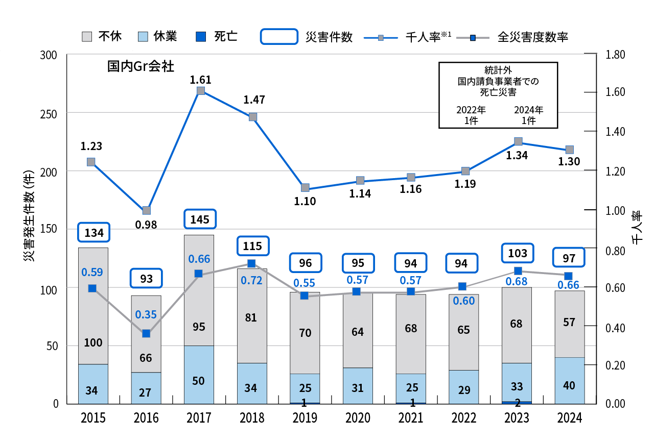 | 2024年度実績 | 0.003 労働損失日数482日 |