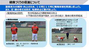 他事業場でも、従業員向けのオリジナル体操動画を公開しています。体操動画は、グループ内の強化スポーツチーム(ラグビー、野球)の選手や、身近な職場メンバーで作成するなど、楽しみながら取り組める工夫を行っています。