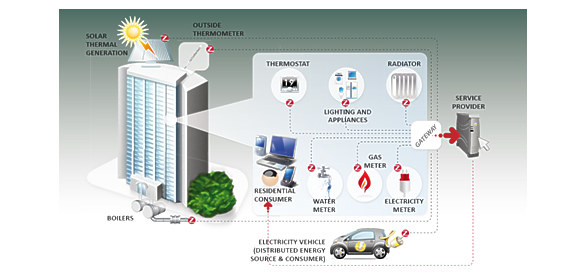 CO2排出量削減のために風力発電や太陽光発電の大幅導入を計画している欧州では、需要ピーク時の発電容量不足への機動的な対応が課題となっています。その解決のために、スマートグリッドおよび家庭内の電力消費を統合的に監視・制御するHEMS・デマンドレスポンス機能を備えた家屋であるスマートホームの技術開発、実証実験計画が進められています。欧州共同体(EU)の政策執行機関である欧州委員会は、2010年1月から、ブリストル(英国)、ライプツィヒ(ドイツ)、ソフィア(ブルカリア)、バルセロナ(スペイン)の4都市で行われているスマートホームの実証実験をEUプロジェクトとして認証し、総額200万ユーロの支援を行っています。
