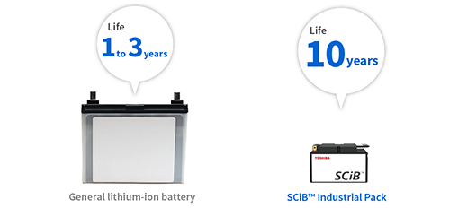 SCiB™ Industrial Pack can be used for 10 years, more than 3 times longer than lead-acid batteries!